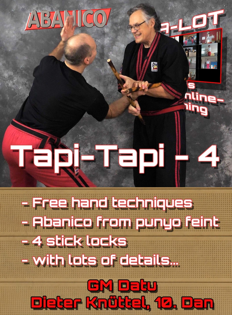 GM Datu Dieter Knüttel teaches Tapi-Tapi 4: Free Hand techniques, Abanicos from punyo feint, 4 stick locks