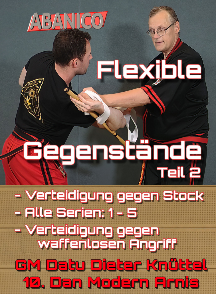 In diesem zweiten Video demonstriert GM Datu Dieter Knüttel den Ensatz von flexiben Gegenständen in der Selbstverteidigung. Dies könnte z. B. ein Gürtel, ein Handtuch oder ein Pulli sein.