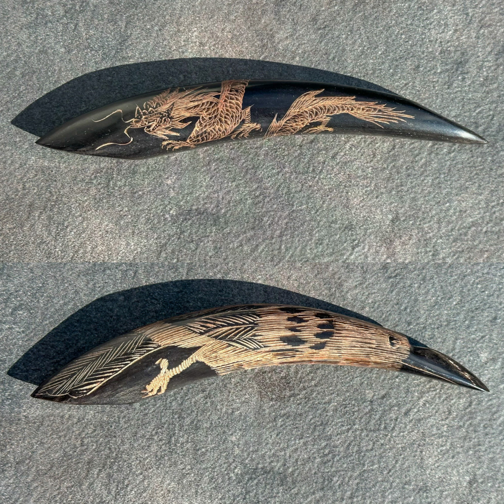 Es sind 2 neue Horn Palmsticks verfügbar, die mit Drachen bzw. Adler verziert sind.