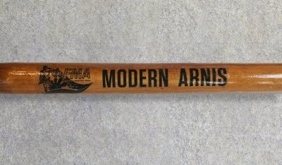 Geglättet, verziert, mit dem Schriftzug “Modern Arnis” und dem FMA Logo mit Lapu-Lapu und der philippinischen Fahne versehen und lackiert.