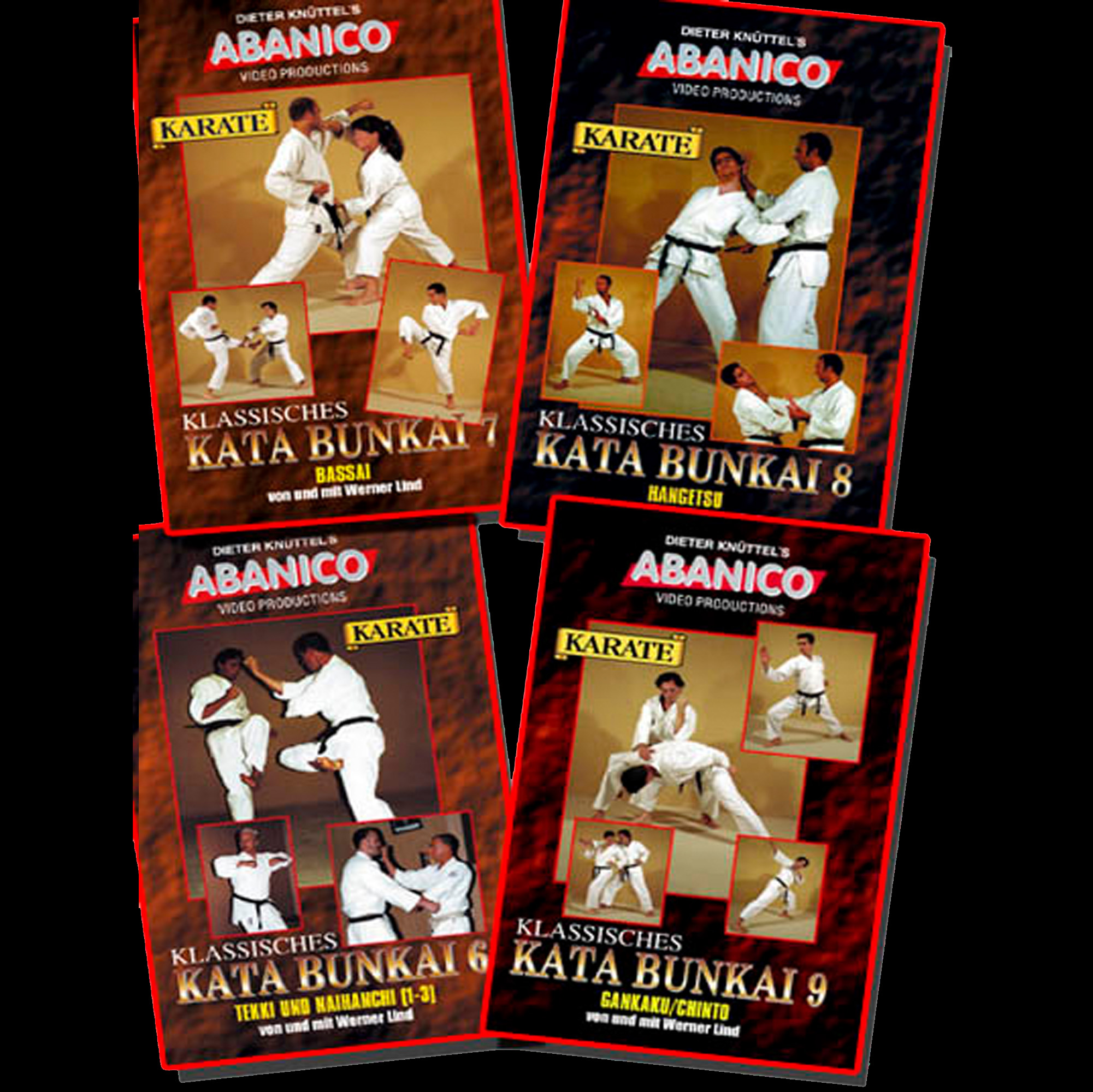 4 download-Videos über die folgenden Kata: Tekki/Naihanchi 1-3, Bassa/Passai, Hangetsu/Seisan und Gankaku/Chinto