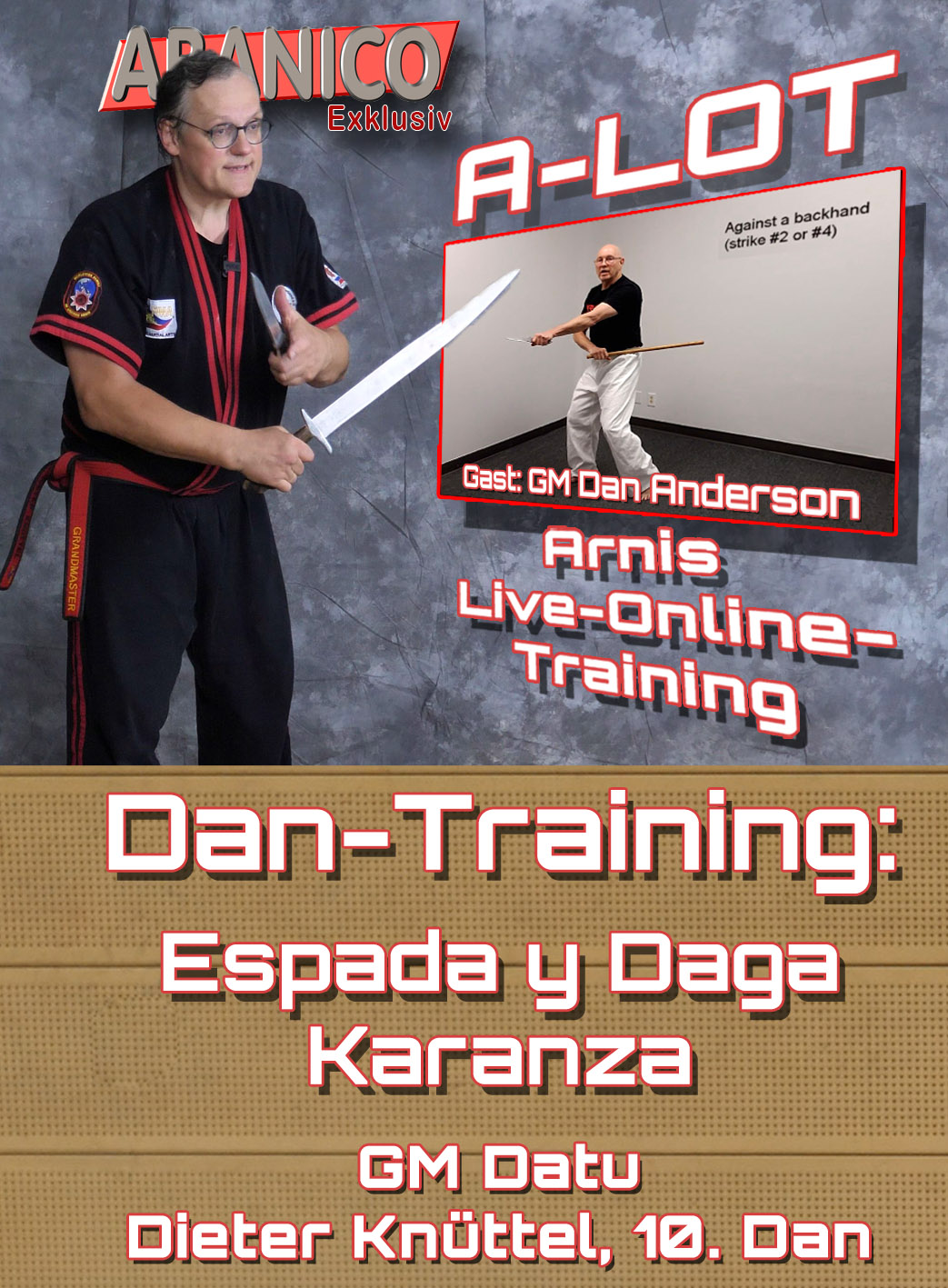 Dies ist das Video vom Arnis Live-Online-Training, (A-LOT) das GM Datu Dieter Knüttel, 10. Dan Modern Arnis, zum Thema Espada y Daga – Karanza abgehalten hat.
